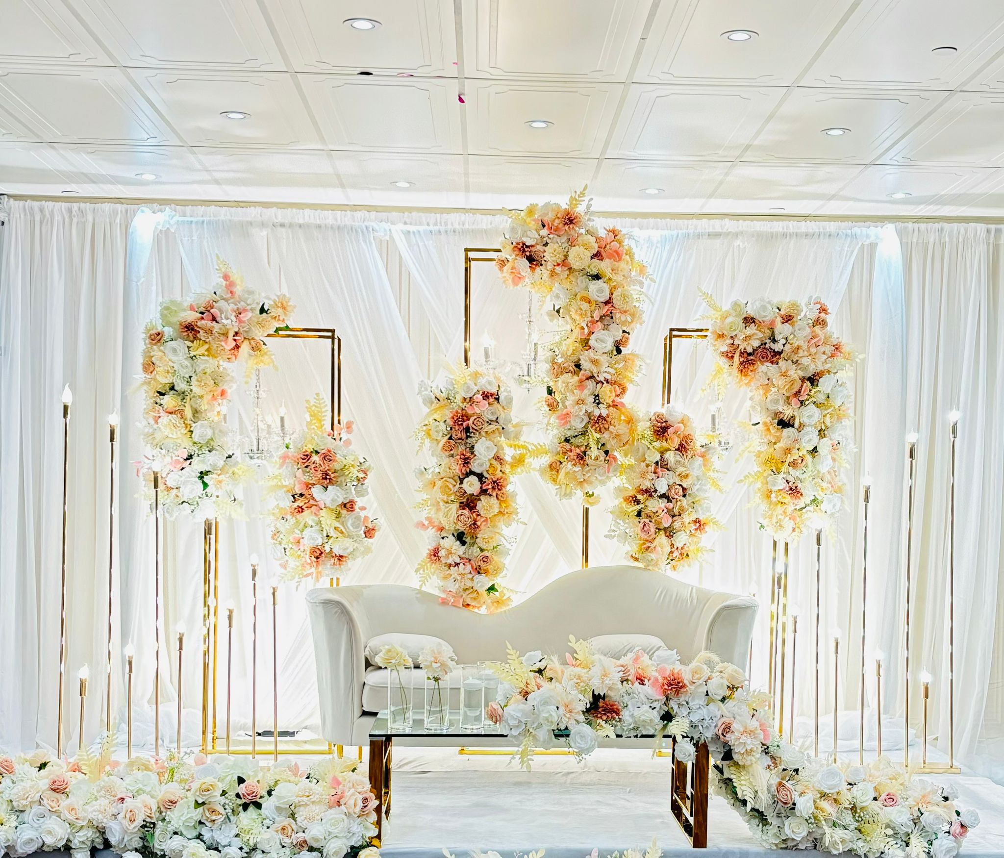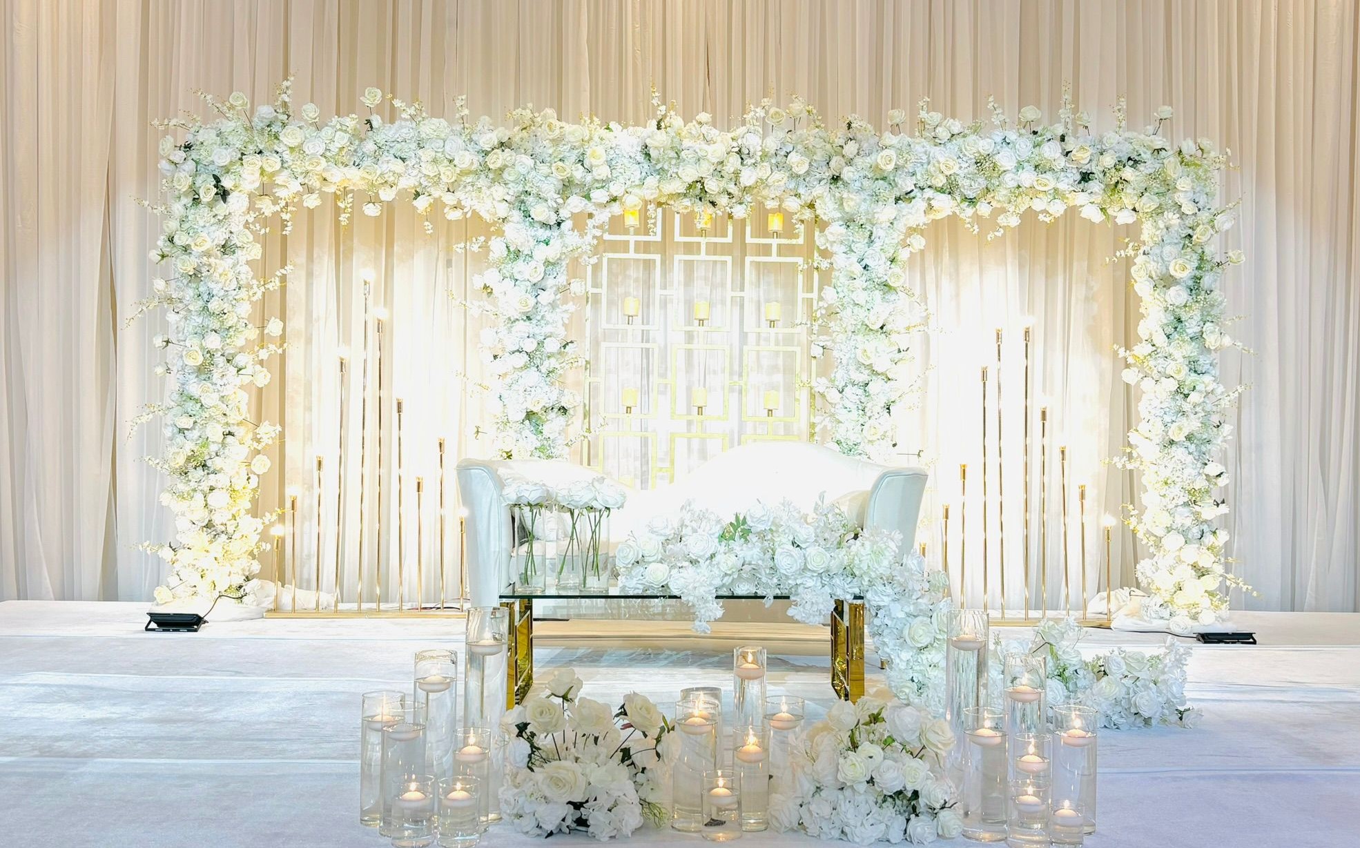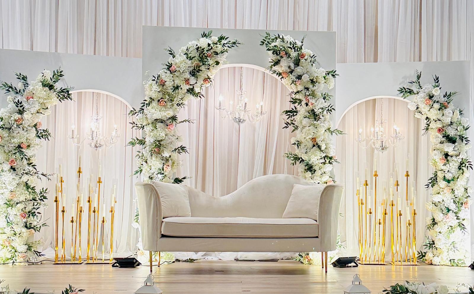 Explore our stunning collection of wedding stages, centerpiece designs, and breathtaking backdrops, crafted to make your special day unforgettable.